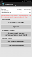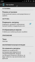 Благодаря разработчикам, которые использовали данное программное обеспечение мы получили большое количество различных графических оболочек, а также уникальных прошивок. Они позволяют разнообразить работу, подобрать оптимальное решение для себя, при этом расширить стандартный функционал устройства. Некоторые настройки позволяют полностью отключить всплывающую рекламу, или же изменить графическое оформление вашего устройства, на что-то более интересное и приятное. Также появились прошивки, который отключают функции, использующиеся крайне редко. Установка приложения производиться из стандартного файла формата apk. В официальном маркете утилита, по очевидным причинам отсутствует. Для корректной работы, вам придется получить права супер пользователя, а также иметь устройство на операционной системе андроид версии не ниже чем 4.0.3.Интерфейс