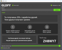 Объем заработков будет зависеть от мощности процессоров ПК. Также количество дохода определяется текущим уровнем. Чем выше уровень, тем быстрее добыча крипты. Чем дольше пользуешься GLDFY, тем выше уровень.Разработчики предлагают сразу получить пятый уровень, поэтому предлагают после регистрации в системе сразу ввести следующий чит-код: GLDZH8WY7.