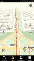 Кроме использования карт в режиме онлайн (используя подключение через Wi-Fi или мобильный интернет), есть возможность загрузить карты прямо на устройство и пользоваться ими в любое время. Сам процесс использования навигатора очень прост – достаточно выбрать на карте пункт назначения и нажать на кнопку Поехали. Маршрутов будет построено несколько и пользователь будет иметь возможность самостоятельно выбрать оптимальный для него вариант.Ещё одна очень полезная функция – это возможность просмотреть данные об организациях и различных заведениях в процессе движения. Данные эти находятся во встроенной базе навигатора. В результате, есть возможность найти необходимы объект на карте по его названию. Результат поиска будет содержать не только адрес, но и такую информацию, как режим работы, контактный номер телефона и так далее.