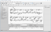 Процесс редактирования тоже особых сложностей не вызывает: любые операции с элементами можно осуществлять при помощи фиксированных комбинаций клавиш. Сохранение уже готового проекта производиться в нескольких доступных форматах: PDF, PNG, SVG. Это позволяет легко распечатать партитуру при помощи стандартного принтера, подключённого к компьютеру.