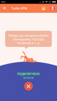 У любого VPN клиента есть существенный недостаток, и это значительное понижение скорости подключения к сети. Это происходит из-за того, что клиенты производят переадресацию на несуществующие IP адреса, находящиеся в других странах. Из-за этого можно заметить медленное подключение к сети. Это заметно даже в том случае, если подключение происходит при помощи Wi-Fi. А при подключении к мобильному интернету скорость и вовсе будет отвратительной. Но программа Turbo VPN не имеет таких больших потерь. При её помощи можно даже просматривать фильмы. Даже если вы подключены к мобильному интернету.Функционал