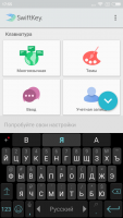 SwiftKey имеет удобную панель для набора текста, ввода цифр и любых других символов. Здесь имеется всё необходимое для чатов, вроде смайликов, эмоджи и прочих атрибутов общения в чате, масса тем оформления. В приложении реализовано отображение удобных подсказок, что упрощает процесс ввода и сокращает его по времени. SwiftKey имеет собственный словарь и алгоритм самообучения, он запоминает, что пишет пользователь, со временем он всё лучше его понимает и выдаёт наиболее подходящие подсказки, позволяя буквально с пары букв вписывать целое слово.Настройка