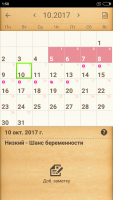 Представленное приложение позволит следить за графиком критических дней, и сразу же замечать малейшие изменения. Теперь все это возможно благодаря Женский календарь. После скачивания и установки приложения, женщины и девушки смогут отмечать красные дни цикла и отслеживать любые изменения. К тому же можно рассказывать о своем самочувствии, настроении или отметить дату последнего полового акта. Ранее небольшие изменения в организме вы могли и не заметить, но теперь за всем этим будет следить программа. Также Женский календарь поможет определить день овуляции и покажет наиболее благоприятные дни для зачатия малыша.Резервное сохранение данных