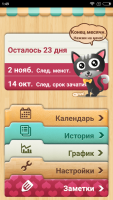 - Позволяет вести виртуальный календарь и отмечать критические дни;