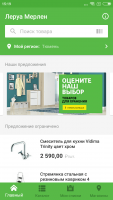 Сеть магазинов Леруа Мерлен известна всем и ориентирована исключительно на тех, кто решил заняться ремонтом. У них очень много товаров, которые позволят выполнить ремонт самому, но также оно подойдёт для закупки строительных материалов под бригаду, далеко не каждый готов доверить закупку кому – либо, предпочитая делать это самостоятельно. С помощью приложения можно через Androidустройство заказать все нужные товары через интернет, а не посещать самостоятельно торговые точки.О функционале
