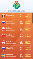 Увы страну нельзя выбирать самостоятельно, но такая проблема прослеживается во всех подобных утилитах, так что это нельзя назвать весомым недостатком. За дополнительную плату можно получить возможность выбирать, но тут каждый выбирает сам, что ему важнее: более высокая скорость или же денежные средства. В целом, даже без выбора сервера, скорость достаточно приличная, в среднем поддерживается работа на скорости до 60 Мбит в секунду, таким показателем может похвастаться не каждый сервис, который предоставляет VPN. Именно по этой причине большинство пользователей отдают свое предпочтение именно DotVPN.