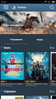 Когда пользователь ищет нужный ему контент у него есть возможность рассмотреть обложку заинтересовавшего его материала, а также ознакомится с кратким его описанием. У всех фильмов такое есть, а также информация о его жанре и рейтинге в Кинопоиске и IMDB. Также, продукт, который понравился пользователю, может быть добавлен в избранное, что упростит процедуру возвращения к нему позже. В GetSeeможно не только смотреть всё в онлайн – режиме, но и скачать всё, что нужно на своё устройство. Большая часть файлов имеет формат FullHD, а музыка здесь также в отличном качестве.