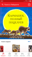 В приложении от магазина Лабиринт очень простой, и в тоже время удобный интерфейс, который позволит легко ориентироваться в нём любому пользователю. Нижняя часть экрана – переход между разделами. Нажав на различные иконки можно попасть в раздел акций, просмотреть каталог новинок, или узнать, сколько на счету накопилось бонусов. Кстати, с помощью последних можно получить очень весомую скидку.Приложение будет удобно каждому, кто любит читать настоящие книги, но не любит ходить в магазин, или у него нет на это времени. Качество книг – точно такое же, как в магазине, да и в таком каталоге найти что – то интересное бывает проще, чем на огромных полках магазина.