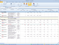 Гранд-Смета создана в «офисной оболочке» и не содержит сложных функций. Рабочая область программы показывает основные данные документа. Основные элементы для управления находятся на панели, которая находится вверху окна. Все файлы открываются в независимых вкладках, а ячейки в столбцах подлежат фильтрации, используя разные выборки.