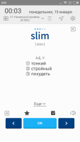 Все слова в базе Wordbit разделены на категории и уровни. Можно начать, как новичок, или со средним уровнем, или даже хорошим уровнем, слова будут варьироваться по своей сложности и частоте употребления. Кстати, когда будет первый запуск, можно пройти небольшой тест, который покажет, каков текущий уровень знаний, на основе его рекомендаций можно выбрать свой уровень. Также, можно настроить объём предлагаемого материала. Сразу отметим, объём 3000 слов лучше не превышать, в противном случае слова даже не будут повторяться и толку особого не будет, если конечно у пользователя не абсолютная память, но зачем такому подобное приложение?