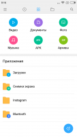 Главная страница в Mi Проводник состоит из трёх вкладок, перемещение между которыми происходит по свайпу или от касаний в углу телефона. В первом разделе отображаются те документы, которые открывались недавно, любые файлы, которые использовались в последние дни. Во втором разделе будут два блока. В одном шесть иконок, там идёт типизация всех файлов по категориям, как видео, фото, APK и тому подобное, а во второй, будут папки в которых хранятся установленные не девайсе приложения. В третьем разделе самый обычный файловый менеджер, тот, каким пользователи привыкли его видеть.По функционалу, Mi Проводник не даёт ничего нового, это достаточно удобный навигатор, который позволят быстро перемещаться по папкам в устройстве, а также искать нужный файл по ключевикам. Из дополнительного – встроенный очиститель кэша, однако, им пользоваться надо очень осторожно, может почистить те файлы, которые нужны пользователю.