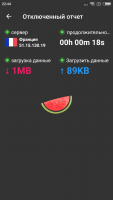 Внешнее оформление бесплатного VPN-клиента имеет минимальное число деталей. Чтобы обойти блокировку, необходимо кликнуть на кнопку с иллюстрацией арбуза, которая расположена внизу основного окна. В случае первого подсоединения нужно будет подтвердить занесение в систему новой конфигурации виртуальной сети.Когда соединение с VPN будет успешно установлено, то перед пользователем возникнет реклама. Именно она обеспечивает разработчикам программного обеспечения доход. В софте отсутствует как премиум-подписка, так и платные точки подключения. Примечательно, что даже за деньги рекламу деактивировать невозможно.