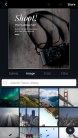 - Есть множество шаблонов, стикеров и фильтров для обработки;