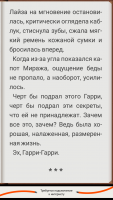 Приложение отображает не только текстовую информацию, но и иллюстрации, если таковые есть в наличии. В нижней части экрана можно просмотреть информацию о количестве прочитанных и оставшихся страниц. Также пользователи могут формировать списки произведений по собственным предпочтениям для ознакомления в будущем и создание закладок.