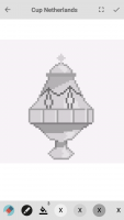 Экран приложения, изображающий палитру и шаблон для раскрашивания, выглядит вполне типично для программ подобного рода. В нижней части экрана располагаются инструменты для редактирования изображений (ластик, кисти) и палитра цветов, а в верхней части отображается сама картинка. Палитра шаблона, который надо раскрашивать большим количеством оттенков, может не поместиться полностью на нижней половине экрана. Её можно прокручивать, делая пальцем «свайпы» вправо и влево.Мобильную программу «Пиксельные логотипы» можно скачивать и использовать на бесплатной основе.