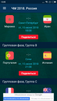Узнать список матчей легко. Нужно перейти на главную страницу приложения, где будет показана необходимая информация. До того, как начнется чемпионат, в приложении уже можно найти расписание матчей, указано точное время начала игры и стадиона, где будет проходить матч. После окончания групповой стадии, производитель обещает сообщать пользователям стадию плей-офф. Есть также календарь этапов и включение push-уведомлений о ближайших событиях, результатах и прочего.Интерфейс и локация построены разумно – боковое меню перенаправит к любой точке приложения.