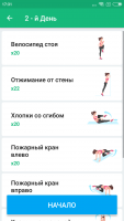 Кстати, приложение достаточно практичное. Сбиться со счёта дней нереально, поскольку оно их само отмечает. Пройденные тренировки также отмечаются. Демонстрация упражнений даётся в виде анимации, которая не позволит делать его неправильно, а если вдруг стало сложно, есть голосовые подсказки, которые пояснят то, что делается на видео.