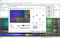 Во второй области присутствует мозаика, созданная из разных цветов. Каждый цвет показывает определённый тип файлов, а также указывает на его количество. Сбоку от мозаики будет показано соотношение цветов к типам файлов. Есть функция автоматического выделения файлов одинакового типа.