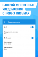 - самостоятельный выбор времени прихода оповещений о новых письмах;