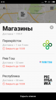 - Заказ продуктов на дом из множества магазинов;