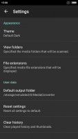 Стоит отметить, что у Media Converterдизайн немного необычен. Некоторым, по началу он покажется сложным, чему способствует ещё и отсутствие русификации в приложении. Однако, если немного потратить времени и привыкнуть, всё становится на свои места. Так, весь функционал поделен на блоки, между которыми пользователь перемещается, как между вкладками браузера. Для выбора действия нажимается кнопка на интерфейсе, так можно обновлять страницу, выделять текст, просматривать задачи и выходить в меню, там кстати и настраивается работа этого приложения под себя.После того, как Media Converterзапущен, вкладка с файловым менеджером откроется автоматически. Там будут все папки, которые имеются в данный момент. Можно скрыть некоторые из них, всё это доступно пользователю.