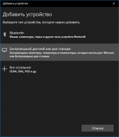 Этот раздел отображает все периферийные устройства, которые подсоединены к компьютеру. Вам необходимо создать подключение к новому устройству, на которое будет передаваться информация. Щёлкнув на клавишу «+», которая находится возле вкладки «Добавление Bluetooth или другого устройства», укажите раздел «Беспроводной дисплей или док-станции».