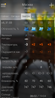 При первом открытии программы рекомендуется указать место проживания и сохранить веденные данные. Впоследствии погода будет обновляться автоматически. Вы можете проверить погоду на сегодняшний день, на завтра или целую неделю. Помимо температуры, присутствуют дополнительные показатели - облачность, влажность, атмосферное давление. И все перечисленное предоставляется в удобной и понятной форме крупным шрифтом.