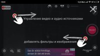 После того, как будет выбран сервис для трансляции, пользователь будет перенесен непосредственно к камере, где можно воспользоваться небольшим дополнительным функционалом, в том числе редактирование материала, применение фильтров и прочее.