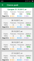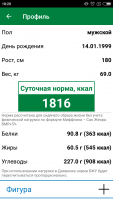 Настроив свой аккаунт и выбрав нужные параметры, программа высчитывает дневную норму питания, в которой отображается количество калорий. При надобности ознакомьтесь с подробностями суточного рациона и посмотрите количество белков, жиров и углеводов, которые вы должны употреблять.