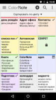 ColorNote – мобильный клиент, который является портативной записной книжкой, позволяющей создавать удобные напоминания и списки дел, а также разделять заметки по отдельным категориям, и ставить на них цветные маркеры. Утилита предназначена для портативных Android- устройств.