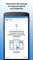 Как только оплата курса будет произведена, появится специальный код, его следует отсканировать при помощи данного приложения. Для установки конкретной учебной программы нужно соответствующее подключение к интернету.