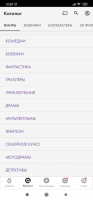 Помимо поиска по жанрам, можно отбирать фильмы из таких категорий как новинки, картины с высоким рейтингом, блокбастеры и т.д.