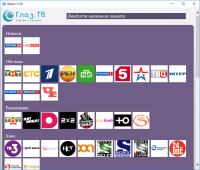 В основном окне программы есть раздел со списком «рабочих» каналов. Глаз ТВ разделён на категории каналов, что позволяет ориентироваться в рубриках и выбирать нужный тип контента. Если вам нужно найти определённый канал, то воспользуйтесь строкой поиска и введите «имя канала».
