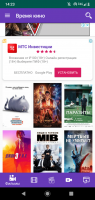 Время кино – это удобный мобильный кинотеатр для устройств Android в портативном варианте. Программа дает возможность без ограничения получать доступ к фильмам в мультимедийной библиотеке. Видео воспроизводится в режиме буферизации, используя режим потока, что позволяет сохранять качество изображения даже в условиях плохой работы сети. Доступен удобный поиск по названию произведения, типу или жанру, а также зарисовке (фрагменту) из сюжета. Также есть специальный раздел подборок фильмов, наиболее популярных за последнее время.