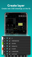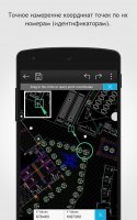 В программе можно делать или загружать файлы которые сделаны на прочих платформах. В программе присутствует изменение масштаба при помощи жестов или лупы дисплея. Можно посмотреть размер, угол, масштаб и площадь деталей на чертеже. Программа дает возможность смотреть схемы в двухмерном, трёхмерном, реальном и скрытом пространствах. Существуют возможность посмотреть каждый слой отдельно. Режим изменения включает в себя опции для добавления стрелок, текста, картинок, звуков, сносок и различных фигур. В программе можно менять форму объекта при помощи полилиний, отрезка, дуги, пера и прочих возможностей, что аналогично приложению АвтоКАД. Существуют отключение одного или некоторого количества слоев, а ещё отображения всего перечня.Работа с файлами