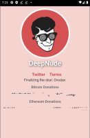 Аналогично программе Голый сканер, это приложение разработано только для клиентов, которым исполнилось 18 лет. Для выдачи снимка без одежды нужно выбрать фото женщины в одежде и перенести его. Нужно сказать, что для получения хорошего итога нужно хорошо отобрать исходную фотографию. На ней должны находиться только не закрытые части тела. Ещё нужно выбирать снимки которые сделаны в анфас. При этом перенести можно лишь фотографии женщин. Программа применяет функции искусственного интеллекта, который создан, основываясь на алгоритме pix2pix. После завершения обработки фотографий программа меняет части тела, которые закрыты, одеждой на обнажённые.Сохранение