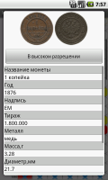 Пользователи могут смотреть картинки монет, детальные данные и цену, а ещё добавлять заметки и образовать личный список коллекции. При получении какой-либо монеты, ее можно пометить в программе, как монета, которая есть в наличии. В добавок можно отыскать желаемую монету в интернет аукционах и магазинах, ссылки на которые есть в программе.