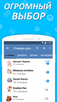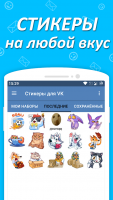 Стикеры для ВК – программа для телефонов Андроид, которая является коллекцией стикеров. Программа предоставляет возможность загружать подборки наклеек и присылать их друзьям. Существует некоторое количество тематических подборок.