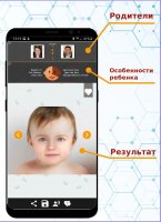 Даётся возможность выполнить тестирование и узнать, как приблизительно будет смотреться лицо вашего ребёнка. Для осуществления анализа нужно загрузить или снять фотографию родителей, основываясь на которых создаётся лицо детей с похожими визуалтными чертами. При этом советуют применять картинку лица в крупном плане. Таким образом, есть возможность осуществить самый точный анализ. В добавок фото должны быть хорошего разрешения и желательно сделаны при свете дня. Процесс создания лица детей осуществляется очень быстро. По окончании действия, клиенты могут посмотреть черты лица детей и оставить картину на внутреннем накопителе телефона. Перед началом создания есть возможность вписать возраст и пол ребёнка. Существует некоторое число изображений с различными видами лица. Существует возможность отправить итоговый результат близким и знакомым в мессенджерах, включая Telegram.Назначение