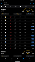 Для применения программы нужно предоставить разрешение на слежку за местоположением телефона. После отслеживания местонахождения в основном меню появится прогноз погоды на самые близкие двое суток для вашего места жительства. Существует возможность посмотреть температуру и влажность воздуха, а ещё множество прочих настроек. Клиенты могут смотреть прогноз каждый час. Информация показана в виде наглядно го графика, на котором видна смена температуры за сутки.Интерактивные карты