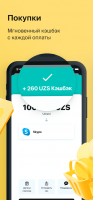 Программа создана для людей, проживающих в Узбекистане, международным объединением организаций ХЬЮМАНС. Программа содержит в себе услуги сотового оператора, денежную платформу и интернет покупки с кэшбеком. При её помощи есть возможность приобретать разные товары и платить за услуги партнёров организации по всей территории страны, получая деньги обратно на баланс. Программа даёт возможность приобрести красивый номер в рассрочку и купить тариф с нужными условиями. Приобретя карту банка в офисе организации, есть возможность переводить средства без комиссионных отчислений. Существует оплата услуг ЖКХ, сотовой связи, чеков в кафе и салонах красоты, приобретений в ТЦ. Нужно сказать, что во время теста программы множество опций не работают, так как они ещё создаются.Бонусы