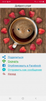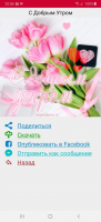 С Добрым Утром - представляем вам приложение для мобильных устройств под управлением Android, которое содержит каталог красочных открыток с пожеланиями доброго утра. Вы сможете порадовать своих близких и друзей яркими картинками, сохранить их в памяти своего смартфона, поделиться ими в социальных сетях и отправить через мессенджеры.