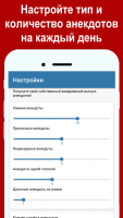 В начале плагин даёт возможность клиентам откорректировать нужные материалы. Имеется возможность отобрать тему анекдотов и их объем, а ещё число их в ленте. Клиенты могут выбрать присутствие или отсутствие брани в материалах. Более того, есть способность откорректировать объем шрифта, поставить белую или черную тему, а ещё переход между меню при помощи свайпов.Лента