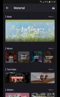 В приложении имеются специальные инструменты, служащие для обработки видеоролика. Пользователь может наложить спецэффекты, фон, добавить музыку, фильтры, закадровый голос. Помимо этого, есть возможность масштабировать, добавить переходы, соединить и нарезать фрагменты, наложить текст, отрегулировать параметры картинки и многое другое.Video Maker содержит собственную библиотеку мультимедийных файлов. Если кликнуть на «Материалы», то можно обнаружить стикеры, лицензированную музыку и прочие материалы, позволяющие создать интересный видеоролик.