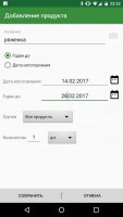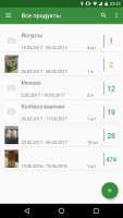Для комфортного просмотра актуального перечня продуктов имеется вкладка в меню, в которой показаны все товары с цветовым разделением в зависимости от остающегося времени защитного содержания (товары, которые близки к просрочке, помечены красным). В программе имеется способность группировать продукты по видам или времени, после которого у них выйдет срок годности. Анализировать все включённые в список продуктов позиции можно самостоятельно, либо при помощи запуска уведомлений и близком завершении времени годности. Есть возможность корректировать оповещения на каждый продукт, вид или весь перечень сразу.Особенности