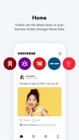 UNIVERSE - это одно из самых известных и востребованных Android-приложений, которое было специально создано для поклонников к-поп музыки. Если вы увлекаетесь этим жанром и являетесь фанатом корейских исполнителей, то необходимо скачать эту уникальную утилиту! Благодаря ей вы сможете не только узнавать о последних событиях в жизни любимых звезд, но и следить за их новейшими проектами. Уникальная функция приложения - возможность познакомиться с самими артистами, прочитать интересные истории и смотреть эксклюзивные видео. Забудьте о поиске любимых песен в интернете - все они уже собраны в UNIVERSE!