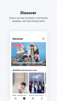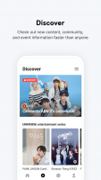Главная страница приложения содержит всю информацию о популярных корейских музыкальных группах. Здесь вы можете узнать последние новости из жизни артистов, ознакомиться с анонсами предстоящих событий и концертов, а также посмотреть видео и фотоматериалы. Вам доступны привлекательные публикации, которые можно открыть в отдельном окне, прочитать комментарии сообщества и оставить свой отзыв. Отличная возможность быть в курсе происходящего и общаться с другими поклонниками музыки Кореи.Группы