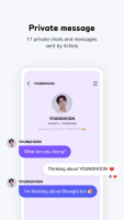Для каждой айдол-группы существует отдельное общество поклонников, известное как «планета». Вам предоставляется возможность выбора, к какой планете присоединиться и следить за жизнью и творчеством любимых айдолов. Кроме того, вы сможете общаться с другими фанатами и делиться своими впечатлениями.Настройки