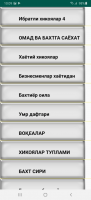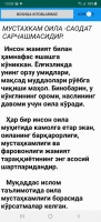 Для доступа к тексту произведения не нужно подключать телефон к интернету. В основной вкладке программы существует некоторое число разделов, в каждом из которых существует одна глава. Нужно сказать, что книга существует лишь на узбекском языке.Книга посвящена семье и воспитанию ребёнка. В ней говорится о том, как выстроить отношения с детьми и предоставить ему верное понятие о будущей жизни в семье, соответствия традициям ислама.