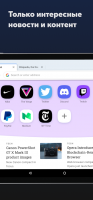 Браузер даёт возможность отыскать данные в интернете. Имеется опция нахождения по голосу. Более того, имеется способность включить сайты в Закладки.В основном меню показывается новостная лента. Ещё клиенты могут отобрать систему поиска, которая будет применяться по умолчанию.